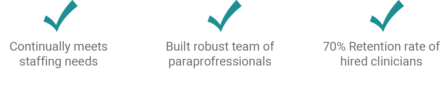 We grew our team to over 150 RBTs, 20+ BCBAs/BCaBAs, and the needed Educational Assistants to meet district needs, additionally: